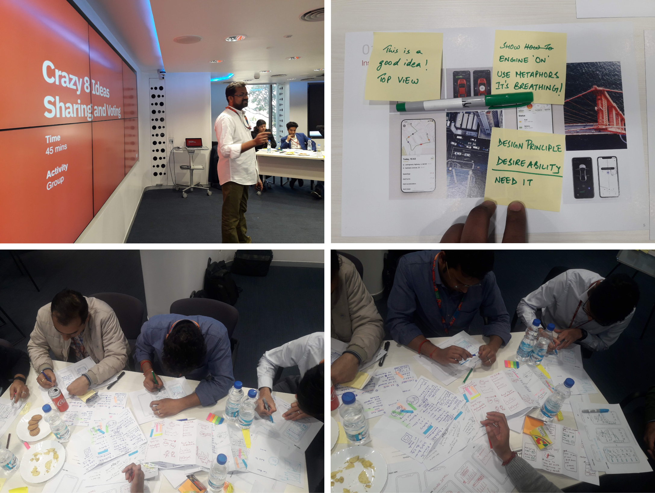 We used the Crazy 8's fast sketching method to generate eight distinct ideas in eight minutes, encouraging rapid ideation and creative problem-solving.
